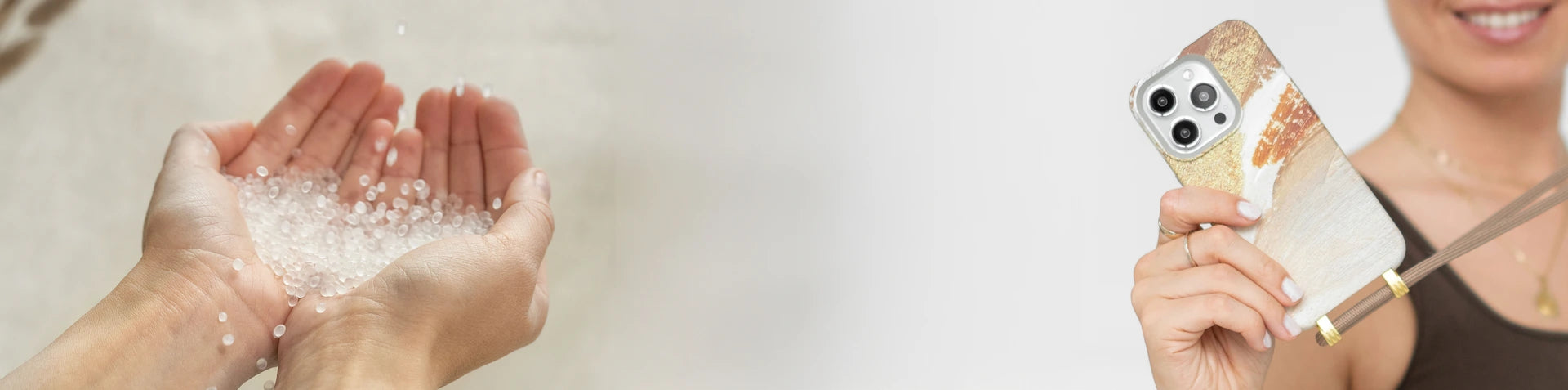 Le matériau bio de nos étuis pour iPhone est principalement composé de PLA, qui est l'abréviation de Polylactic Acid, c'est-à-dire d'acide polylactique. La particularité du PLA est que ses propriétés sont très similaires à celles d'un polymère à base de pétrole, mais que nous n'utilisons pas de pétrole (donc une matière première fossile et donc finie) pour le fabriquer, mais seulement des matières premières naturelles et renouvelables, comme par exemple l'amidon de maïs et l'amidon végétal.